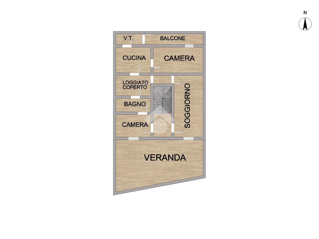 Trattasi di ampio trilocale di circa 182 composto da ingresso in salone a vista con accesso alla terrazza, disimpegno, loggiato coperto, cucina, bagno e due camere da letto di cui un con accesso alla terrazza e l'altra dotata di accesso al balcone.