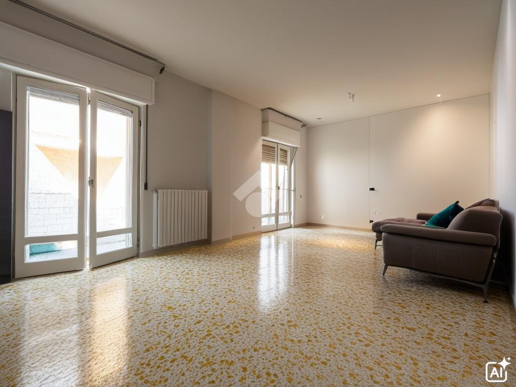 Trattasi di luminoso trilocale di circa 110 mq. composto da ingresso in salone a vista con angolo cottura e accesso al balcone, ripostiglio, corridoio, bagno e due camere da letto con accesso al balcone.
