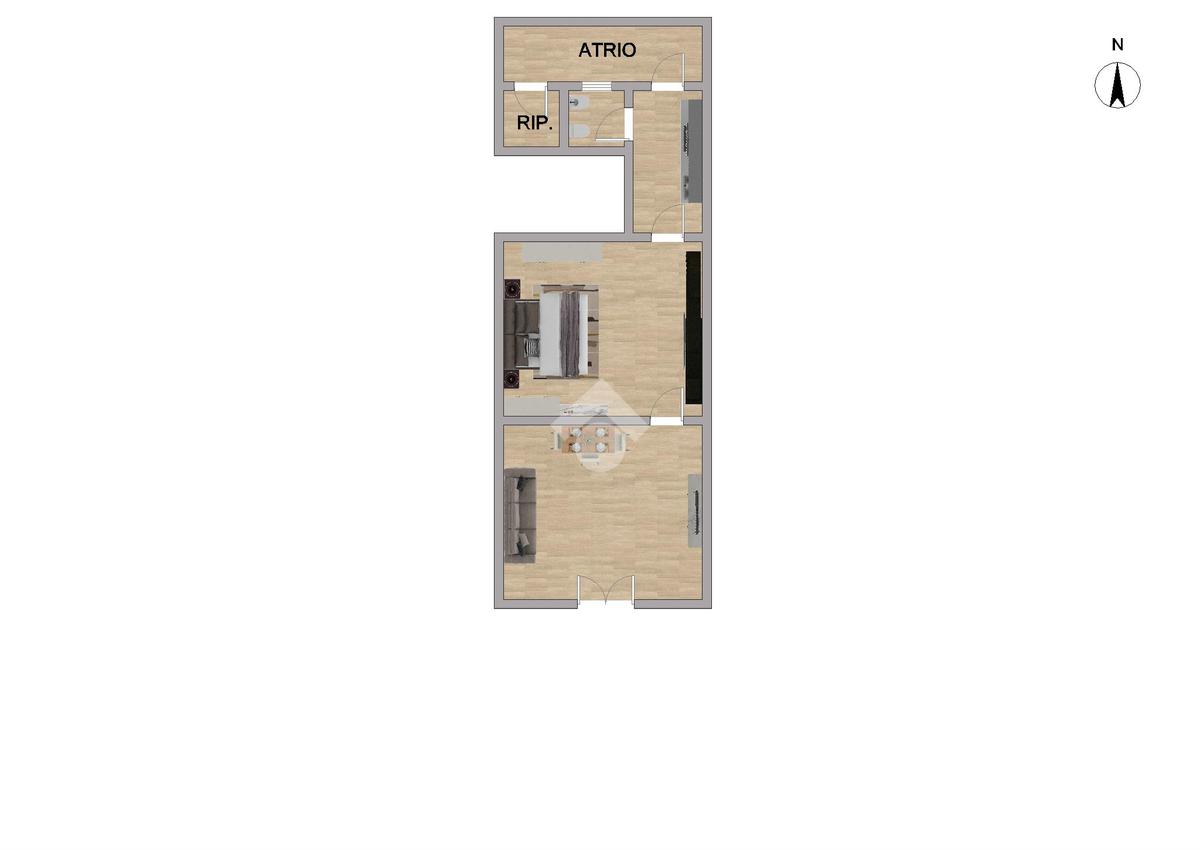 Trattasi comodo bilocale di circa 46 composto da ingresso in soggiorno a vista, camera da letto, cucina e bagno.