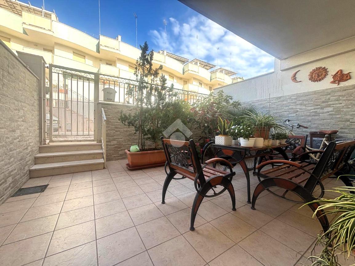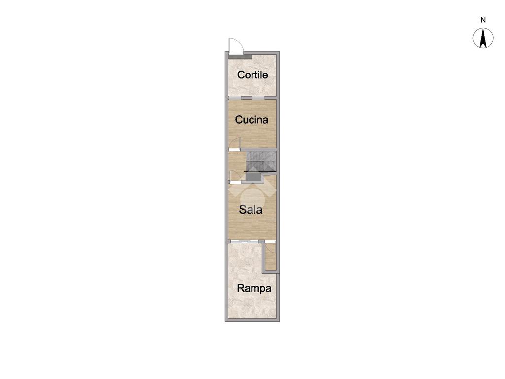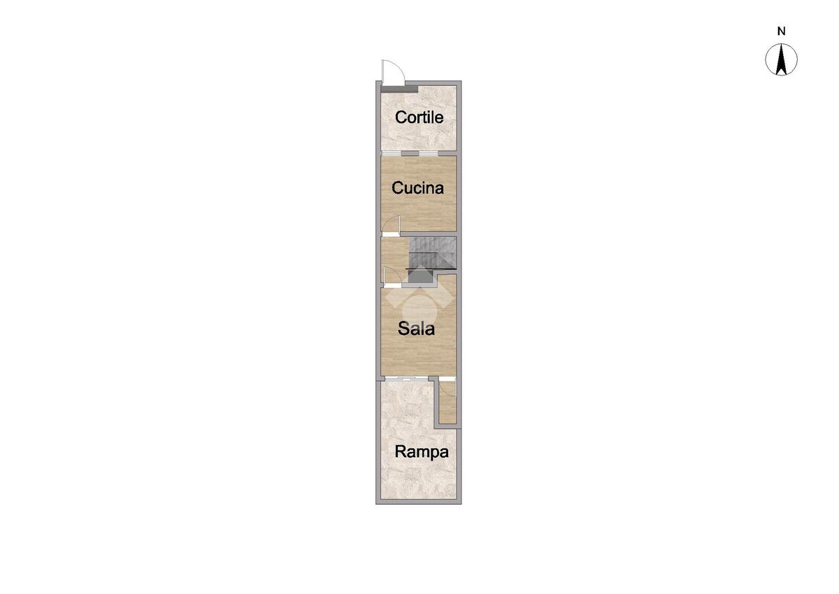 Da Via Saverio De Simone, si ha accesso al piano rialzato, composto da cortile con terrazza al piano, salone a vista con ripostiglio, disimpegno, bagno e camera da letto dotata di terrazzo.