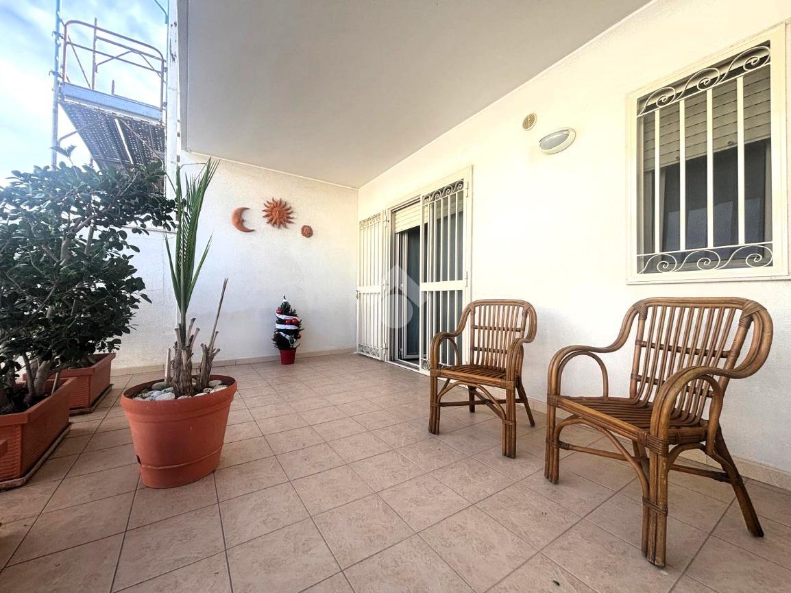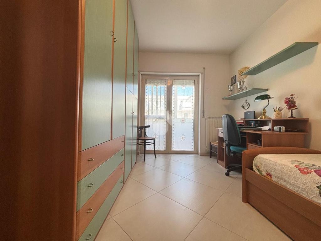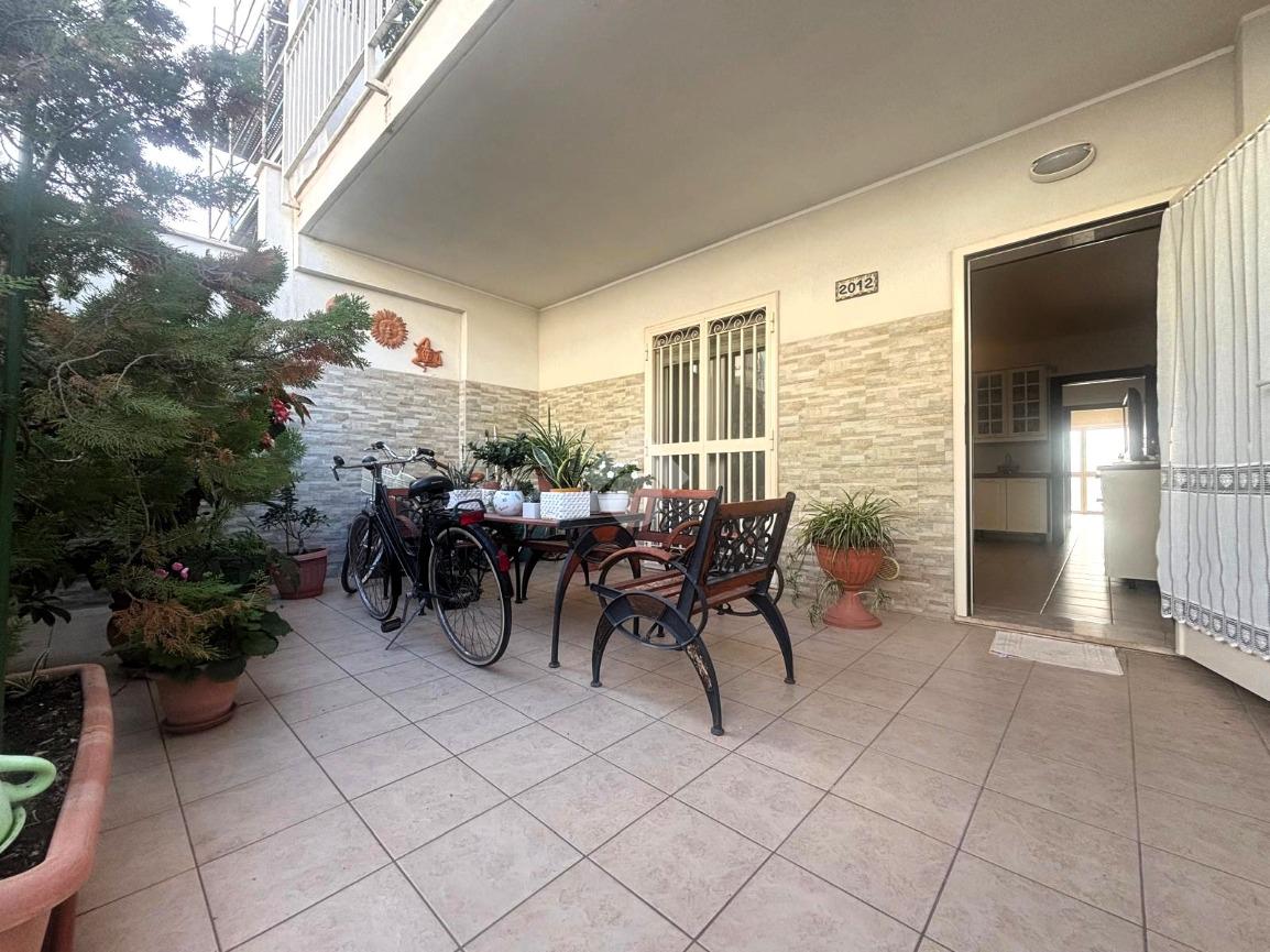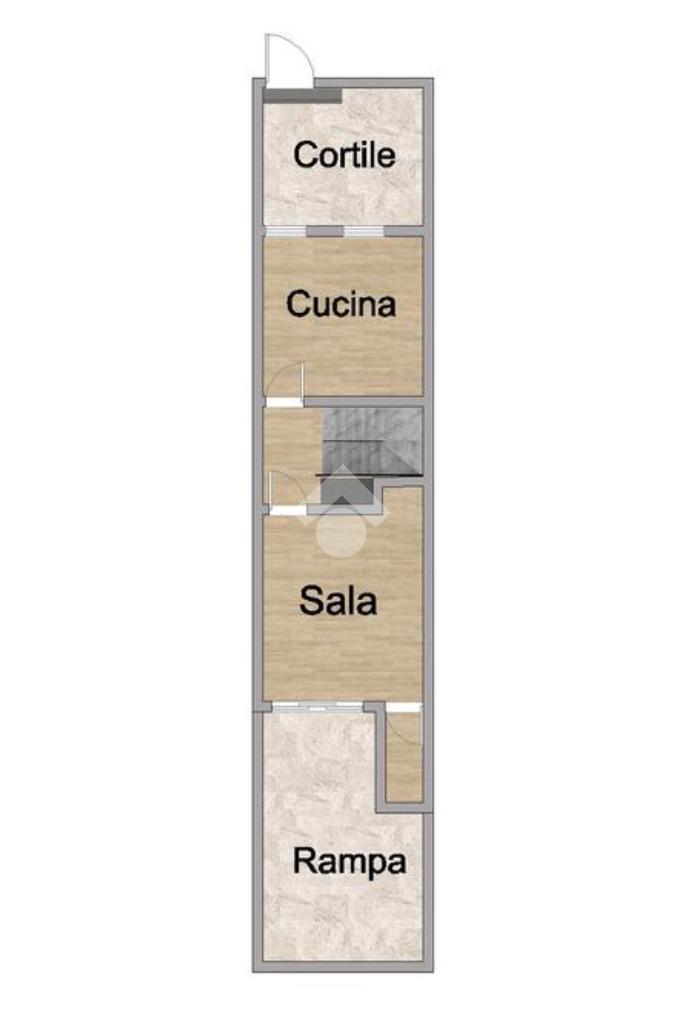 Da Via Saverio De Simone, si ha accesso al piano rialzato, composto da cortile con terrazza al piano, salone a vista con ripostiglio, disimpegno, bagno e camera da letto dotata di terrazzo.