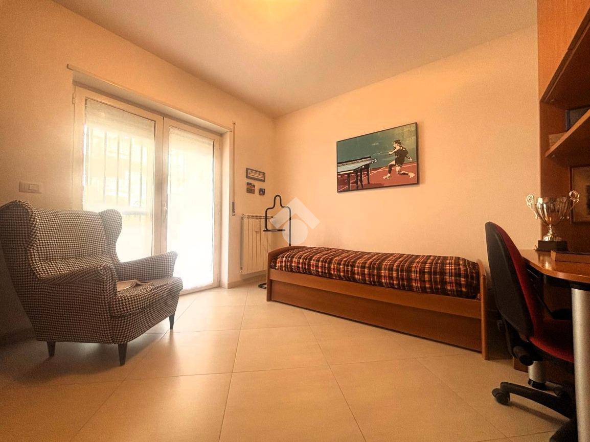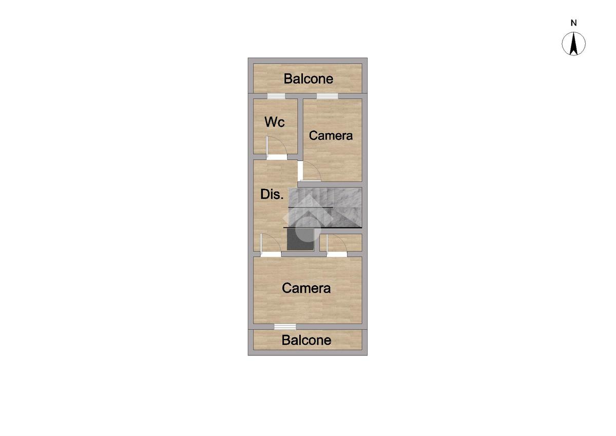 Il primo piano è composto da comodo disimpegno, camera da letto matrimoniale dotata di ripostiglio interno e balcone con ripostiglio in anticorodal, bagno e seconda camera da letto con accesso a balcone verandato.