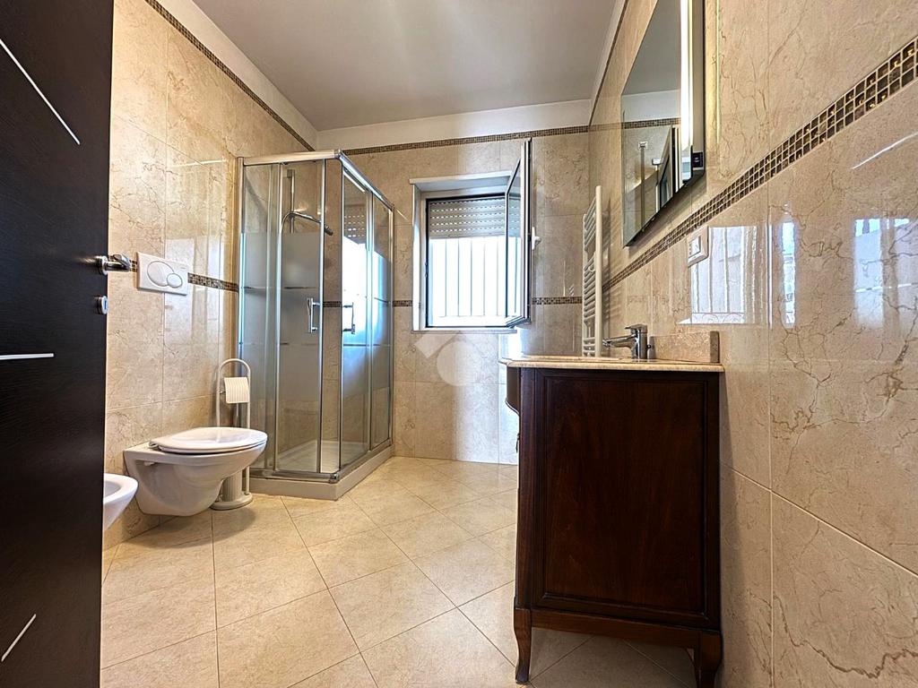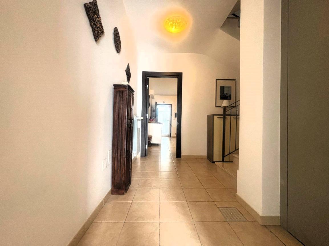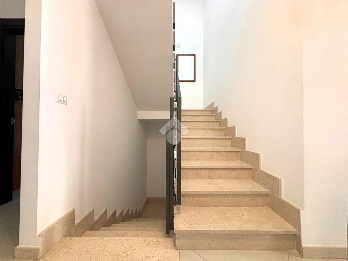 Rifiniture interne: porte d'ingresso blindate, porte interne in legno laminato Wenge, infissi in doppio vetro con apertura vasistas, grate di protezione in ferro blindate con puntale antistrappo e cerniera integrata, tapparelle, zanzariere, pavimentazione in gres porcellanato, scala interna in marmo, ascensore, condizionatori, sanitari sospesi, termoarredi, autoclave, copertura metallica con pannello coibentato e tegole di colore rosso, impianto d'allarme volumetrico e perimetrale, videocitofono, fibra ottica, saracinesca elettrica, cucina con piano ad induzione elettrica e predisposizione per allaccio gas metano, predisposizione per eventuale bagno al piano seminterrato, riscaldamento autonomo con caldaia alimentata a gas metano.
