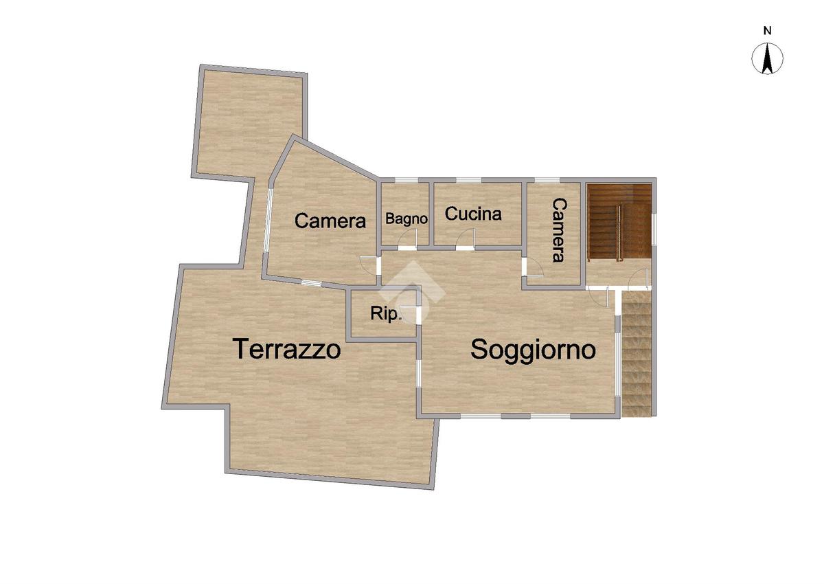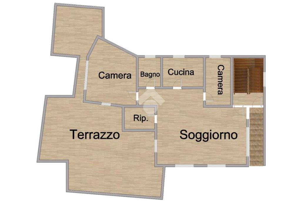 Il primo piano, è così composto: ingresso in doppio salone, due camere da letto di cui una matrimoniale, cucina, bagno, ripostiglio con soppalco e ampio terrazzo.