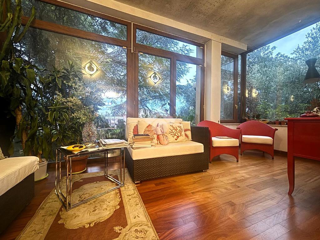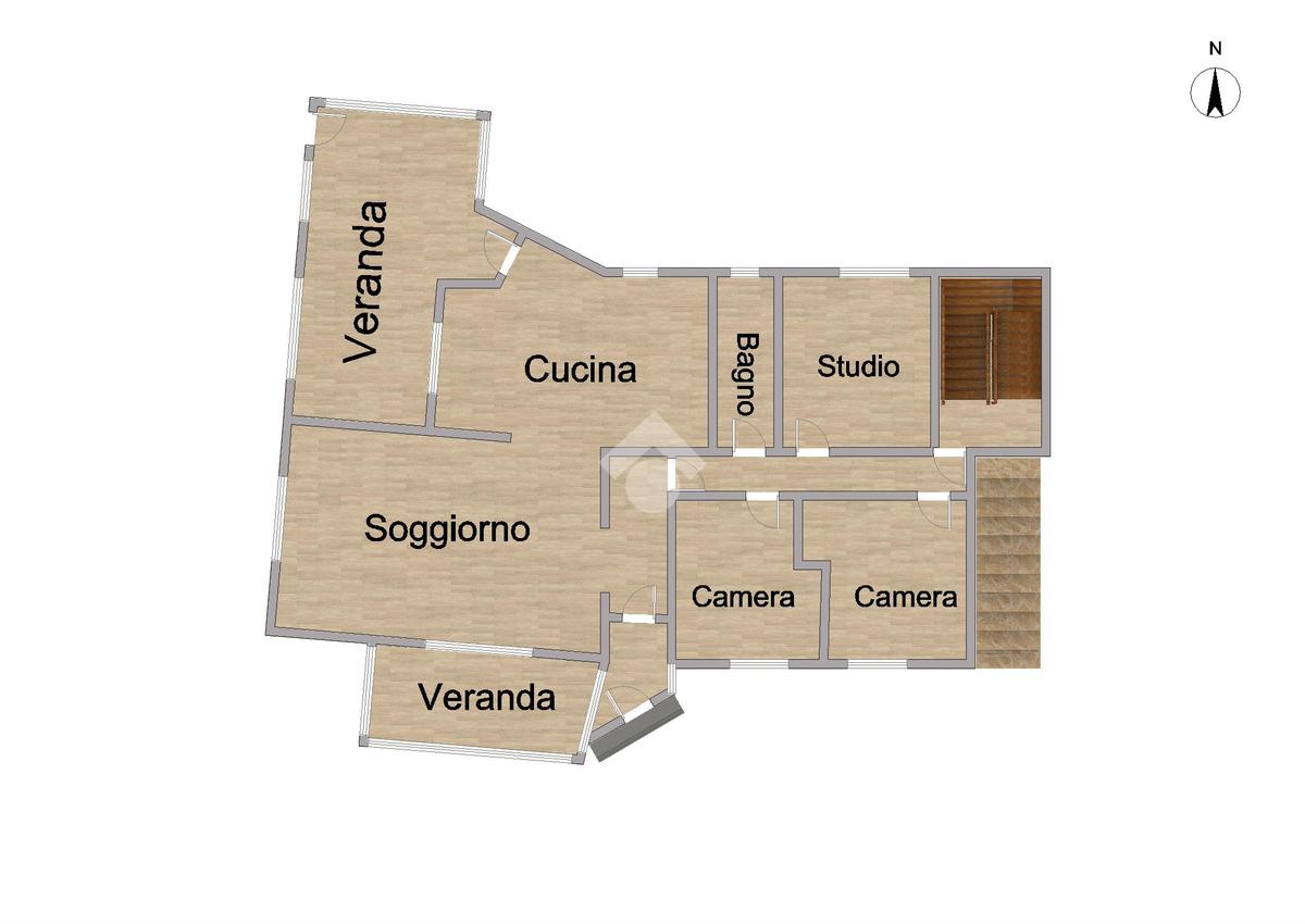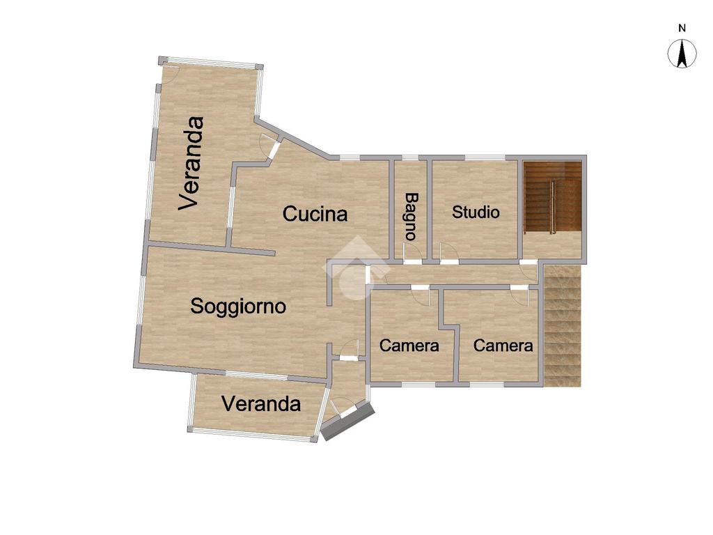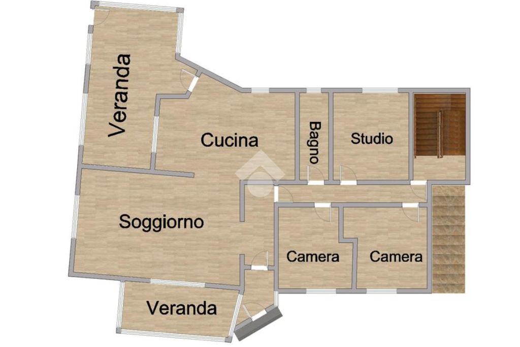 Il piano terra è composto da ingresso in corridoio con salone a vista, cucina, due camere da letto di cui una matrimoniale, studio, bagno e due verande.